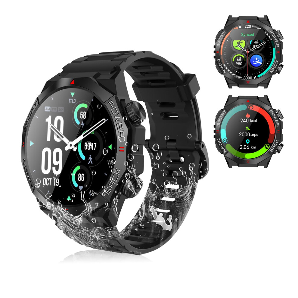 Military Smart Watch Answer Make Calls Heart Rate Blood Pressure 1.85" HD Screen Mens Smartwatch for Android iOS Phones Tactical Pedometer IP68 Waterproof Fitness Watch