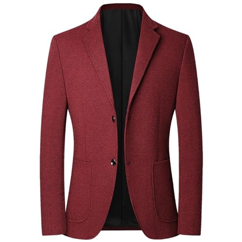 Mens Blazer Jacket,Mens Vintage Lightweight Blazer Jacket Long Sleeve Solid 3-Buttons Chinese Collar Grandad Suit Jacket Slim Fit Suit Blazer Casual Smart Smoking Dinner Blazer,Wine Red,Xl