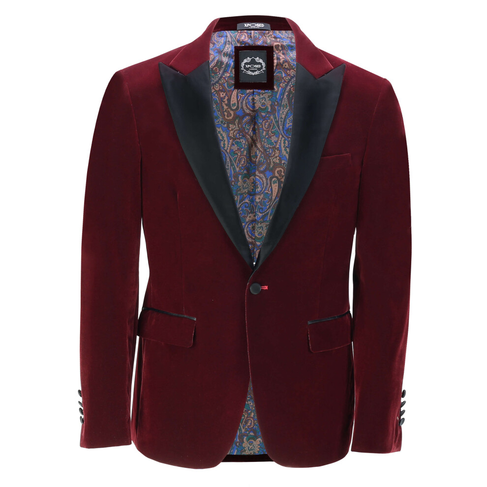 (40, Burgundy) Mens Velvet Tuxedo Dinner Jacket Retro Smoking Coat Formal Tailored Fit Blazer