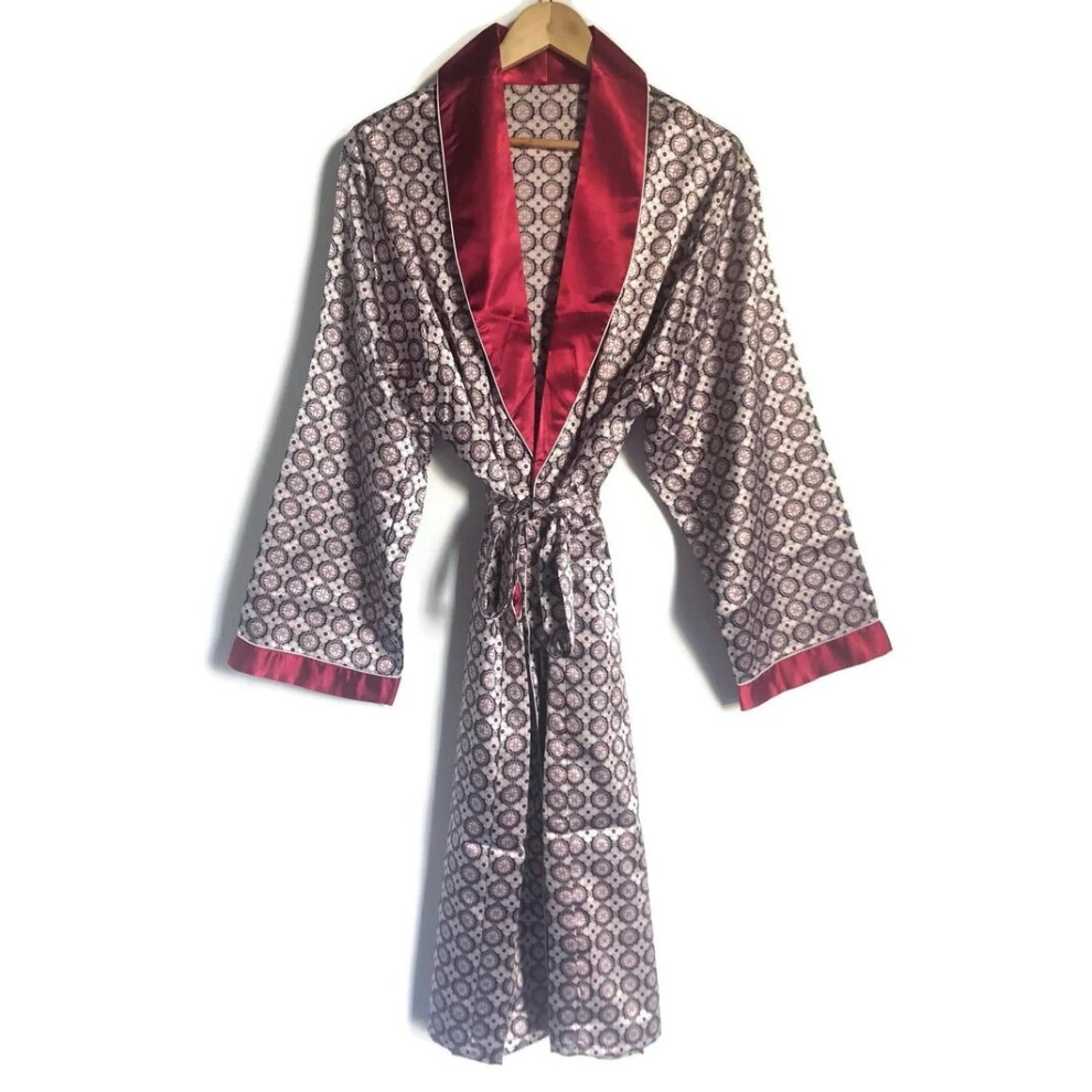 Mens Robe | Smoking Jacket | Boho Dressing Gown | Retro 1970s Vintage Style 70s Pattern | Satin Silky Loungewear Housecoat Gift