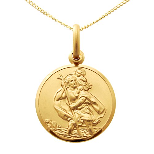 Alexander Castle Solid 9ct Gold St Christopher Pendant Necklace for Women & Children - 16mm with 18" 9ct Gold Chain & Jewellery Gift Box