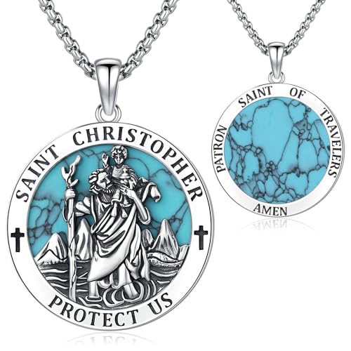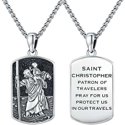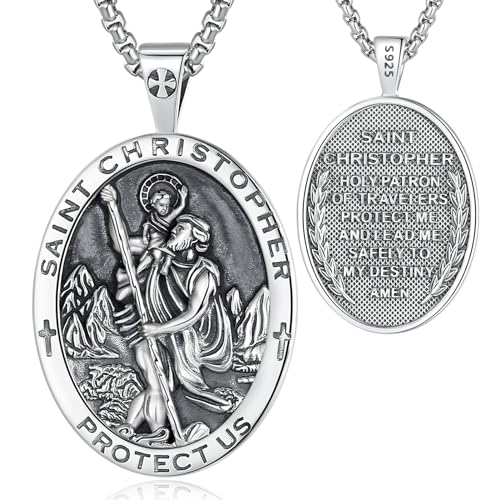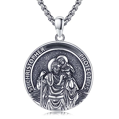 AEONSLOVE 925 Sterling Silver Saint Christopher Necklace for Men Women St Christopher Medal Saint Christopher Pendant Religious Protection Amulet Christian Catholic Jewelry for Boy Girl