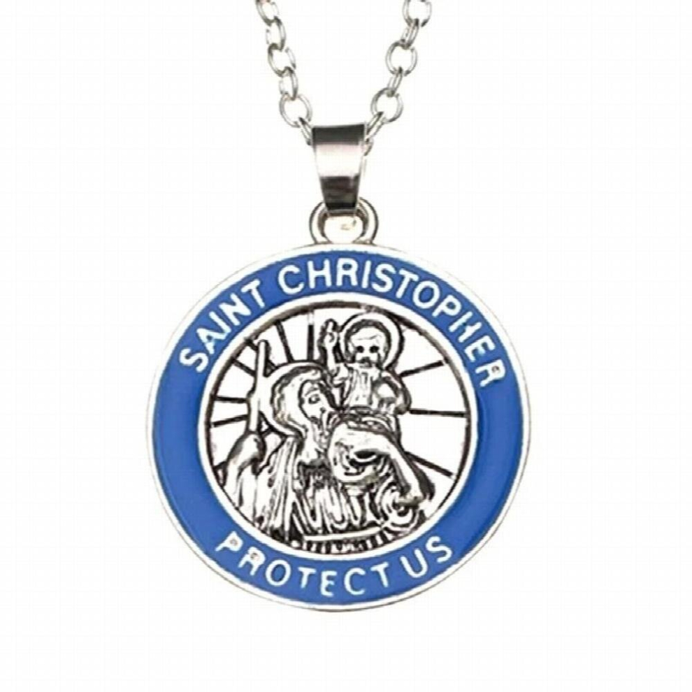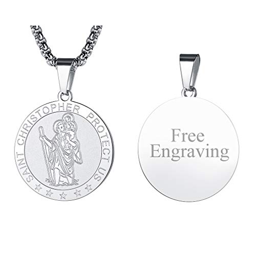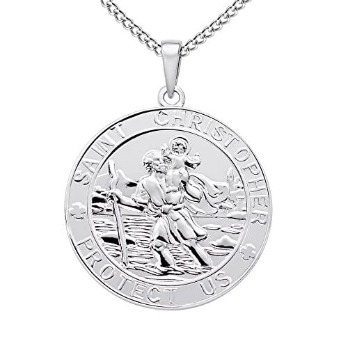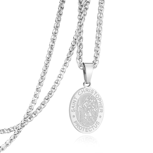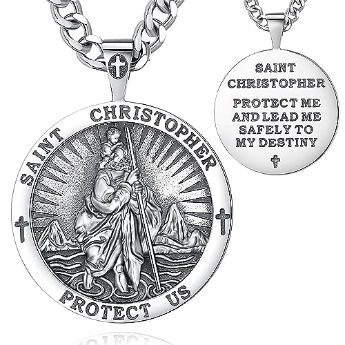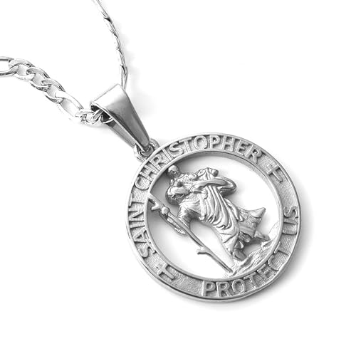 PROSTEEL St Christopher Necklace for Men, Saint Christopher Pendant Chain, Catholic Protection Jewellery Silver Round (With Gift Box)