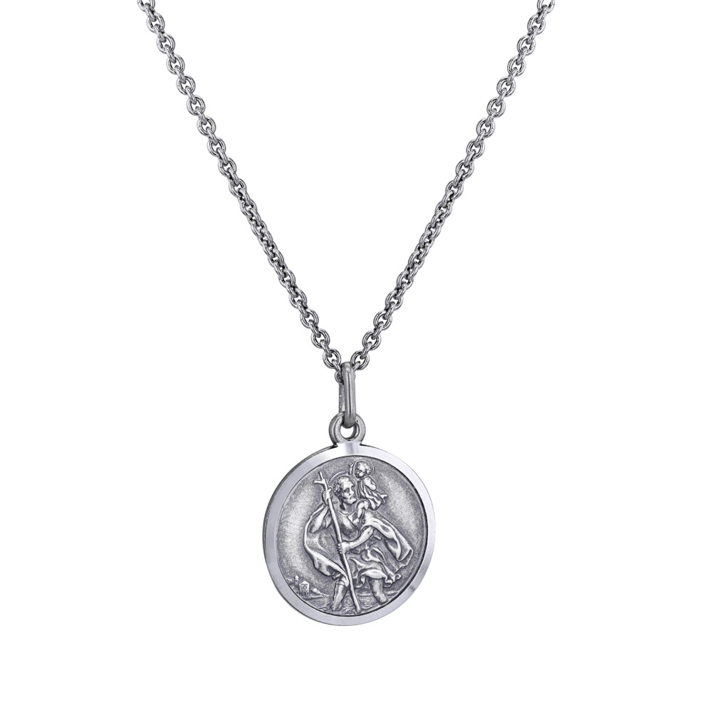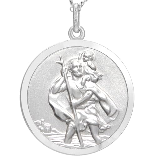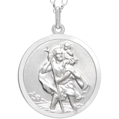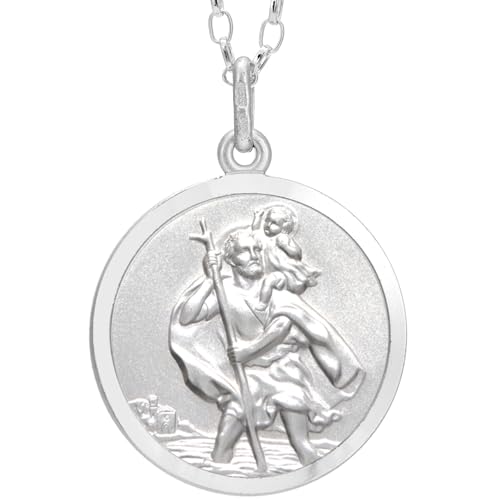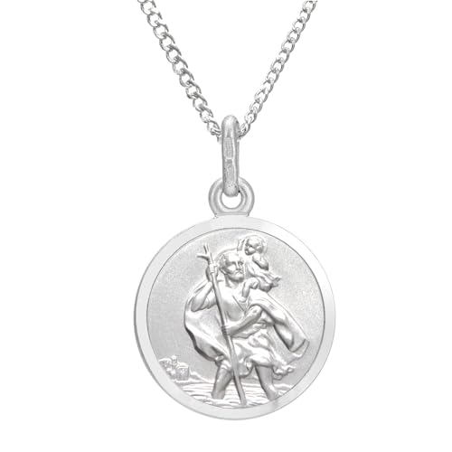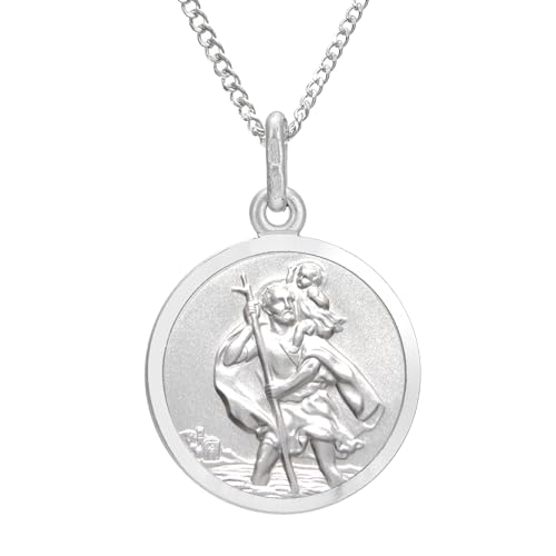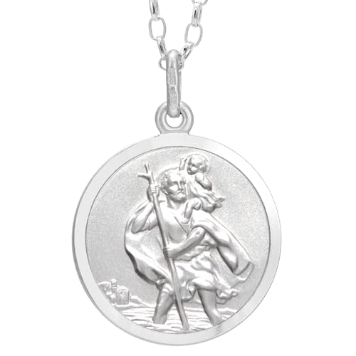 Alexander Castle 925 Sterling Silver St Christopher Pendant Necklace - 18mm with 18" Sterling Silver Chain & Jewellery Gift Box