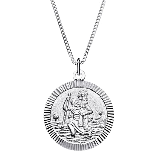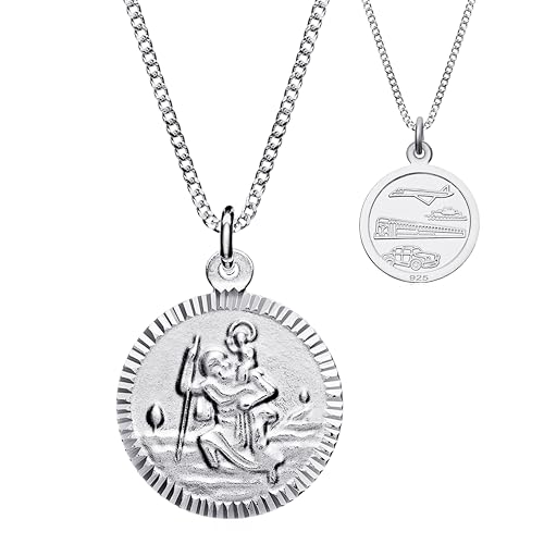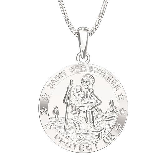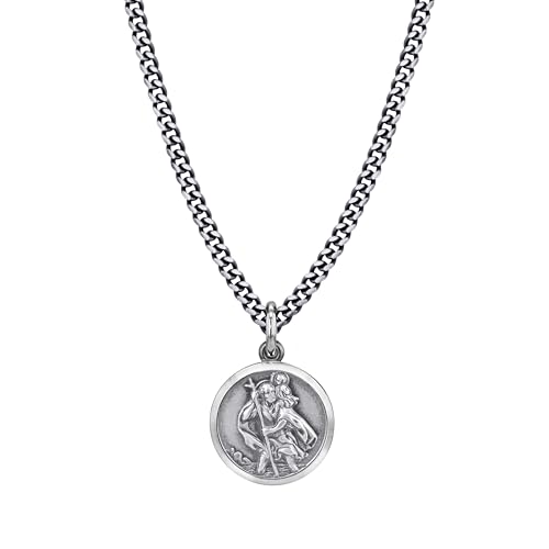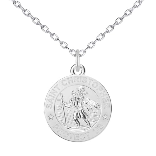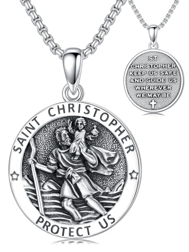 HUKKUN St Christopher Necklace Sterling Silver Saint Christopher Medal Necklace St Christopher Jewellery Catholic Religious Amulet Gifts