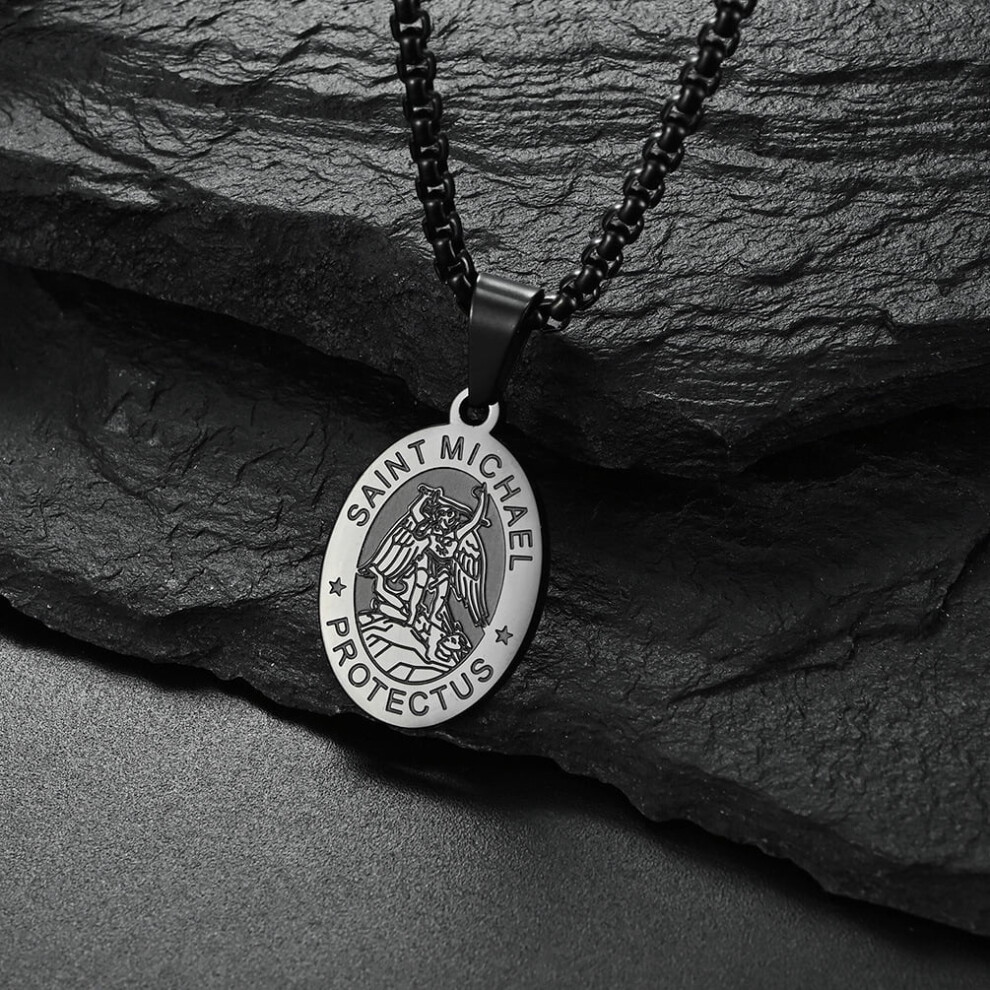 St Christopher Mens Stainless Steel Necklace Titanium Steel Mens Pendant Jewelry