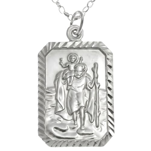 Alexander Castle 925 Sterling Silver St Christopher Pendant Necklace - Rectangular 22mm x 15mm with 18" Silver Chain & Jewellery Gift Box