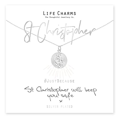 FaithHeart Personalised St Christopher Necklace for Boys Catholic Jewelry Engraved Saint Christopher Pendant Christening Necklaces for Babies Silver Coin Jewellery - Stainless Steel