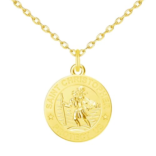 Silvora Gold St Christopher Necklace for Women Christening Gifts Sterling Silver Chain Mens Saint Christopher Necklace