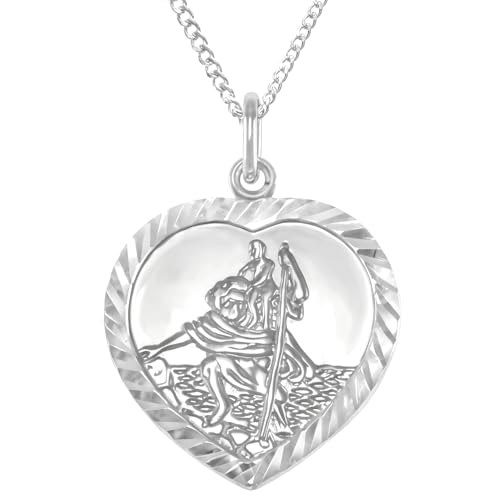 Alexander Castle 925 Sterling Silver St Christopher Pendant Necklace - Heart-Shaped Pendant with 18" Sterling Silver Chain & Jewellery Gift Box