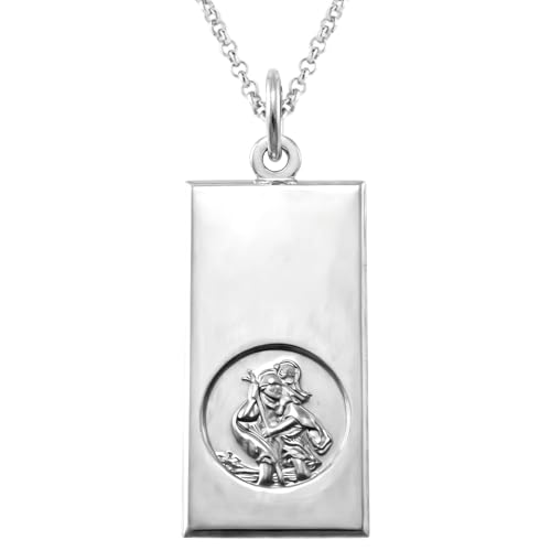 Alexander Castle 925 Sterling Silver St Christopher Pendant Necklace - Rectangular 26mm x 13mm with 18" Sterling Silver Chain & Jewellery Gift Box