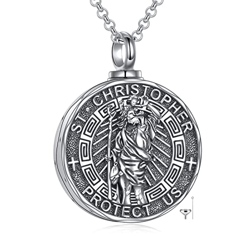 YFN Saint Christopher Urn Necklace for Ashes Sterling Silver St Christopher Cremation Keepsake Pendant Memorial Jewellery Religious Protector Gifts for Women Men