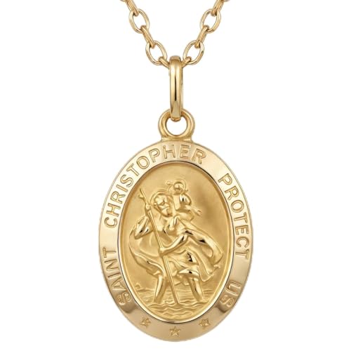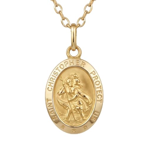 Alexander Castle Solid 9ct Gold St Christopher Pendant Necklace for Women & Children - 20mm x 10mm with 18" 9ct Gold Chain & Jewellery Gift Box