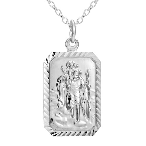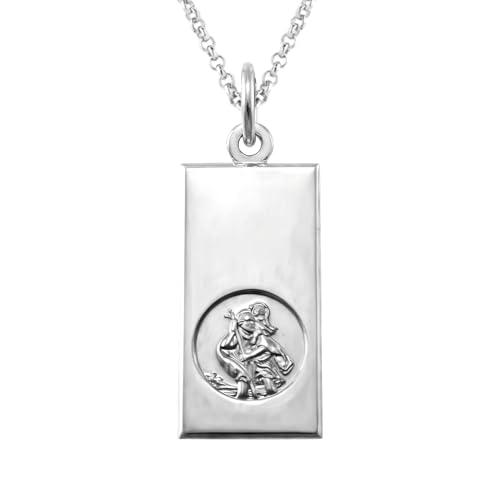 Alexander Castle 925 Sterling Silver St Christopher Pendant Necklace - Rectangular 20mm x 10mm with 18" Sterling Silver Chain & Jewellery Gift Box