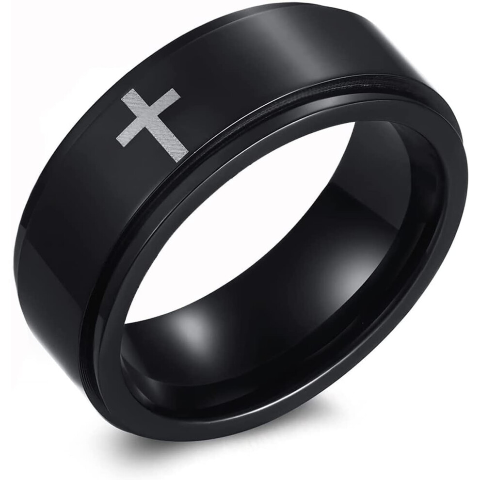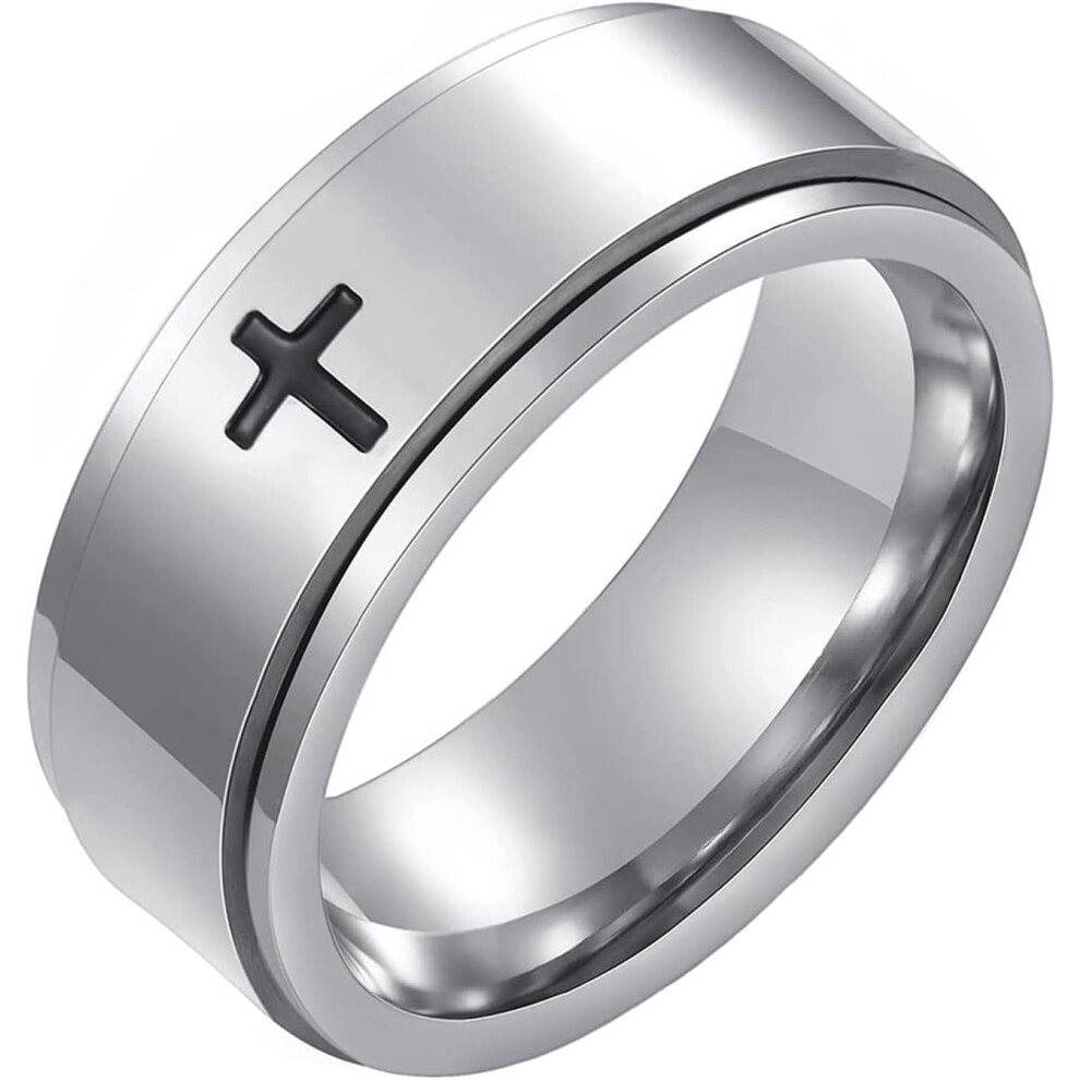 Spinner Cross Rings for Men, Silver/Black Anxiety Fidget Rings Men, Mens Rings Stainless Steel for Stress Relieving, Promise Ring for Women Size 6-12