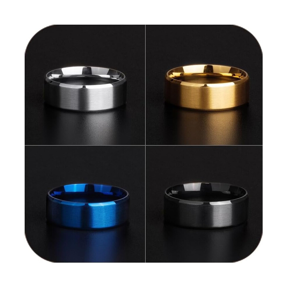 4 Pcs 8 MM Width Mens Rings, Stainless Steel Wedding Bands for men, Gold Silver Black Blue Brushed Finish Beveled Edges Comfort Fit 6-15