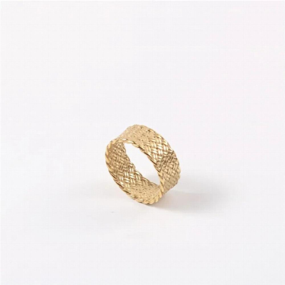 Unusual 18k Matte Rings on Finger Retro Braid Woven Texture Mens Ring Stainless Steel Rings for Women Jewelry
