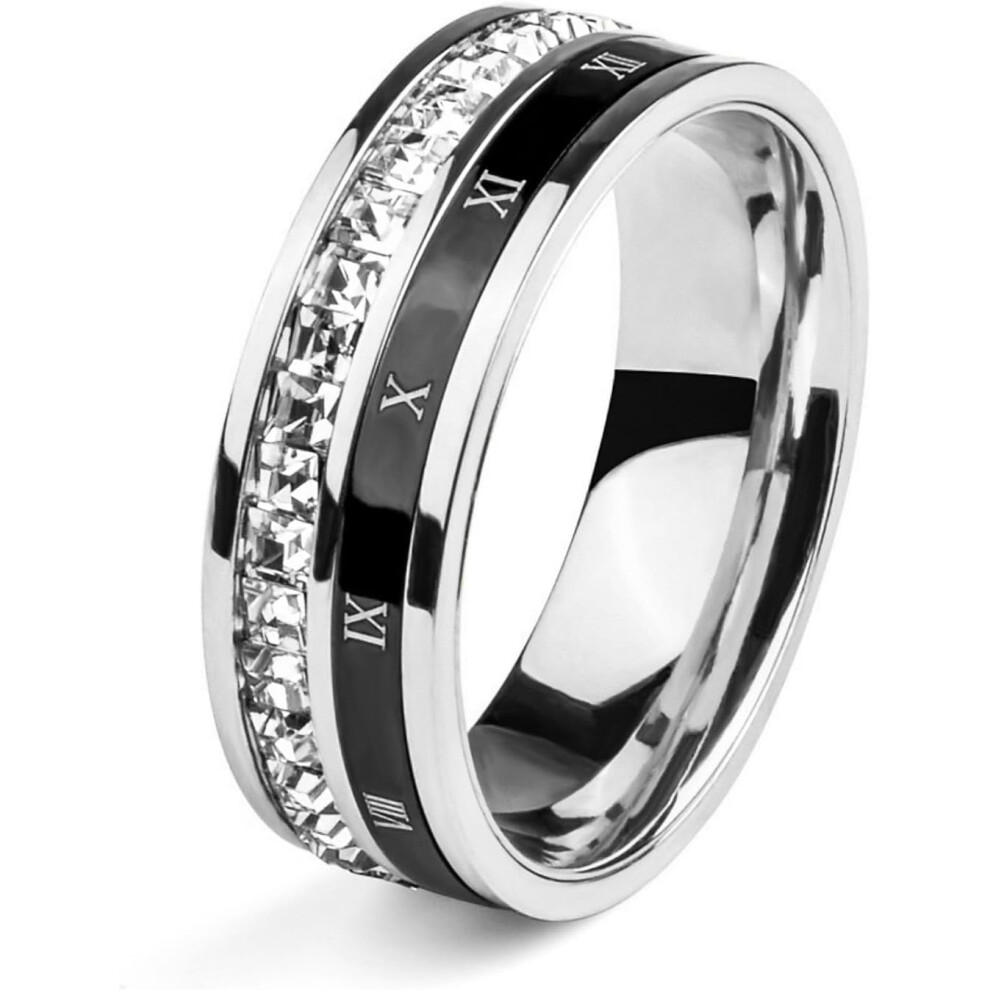 1pc Couple Rings For Men And Women 8mm Mens Stainless Steel Rings Ladies Inlaid Zircon Diamond Rings European And American Couple Rings For Men And W