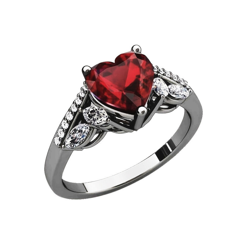 1pc Mens Stainless Steel Rings Womens Red Gemstone Heart Shape Couple Rings