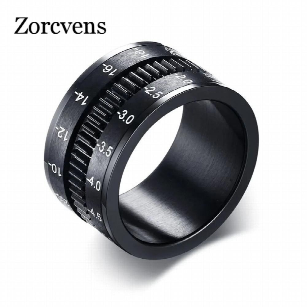 Mens Rings Stainless Steel Camera Lens Ring for Men Jewelry Spinner Band Photographers Accessories