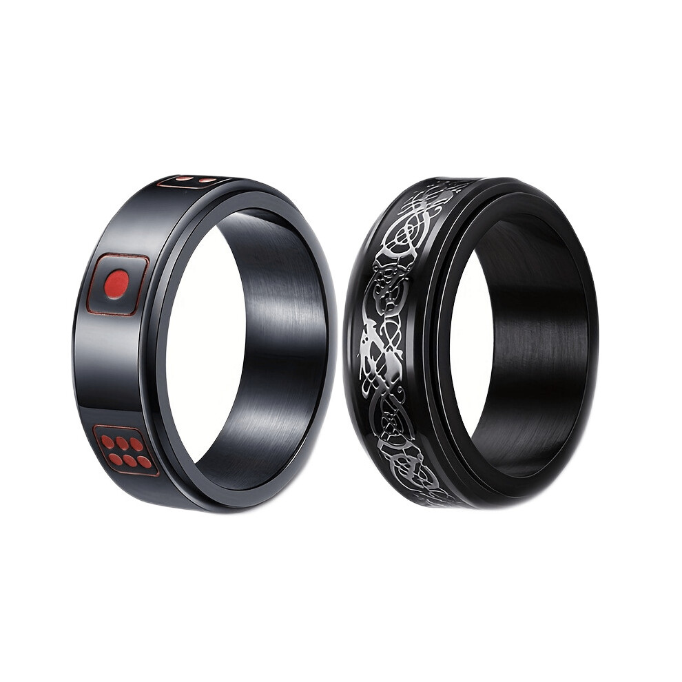 2pcs set Mens Stainless Steel Rings Classic 8mm Rotatable Decompression Ring Dragon Pattern Dice Ring