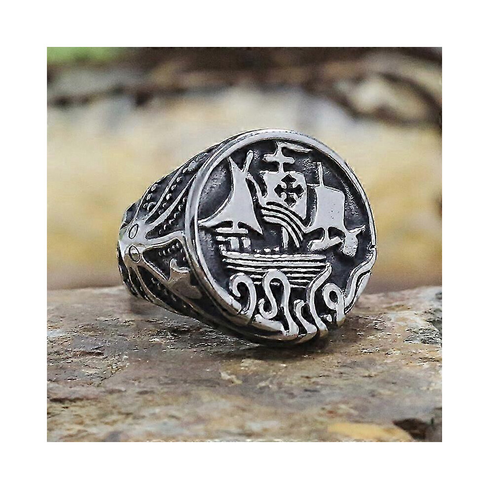 (8, One size) Vintage Gothic Mens Stainless Steel Viking Rings Unique Octopus Tentacle Pirate Ship Ring Norse Amulet Jewelry Size 7-15