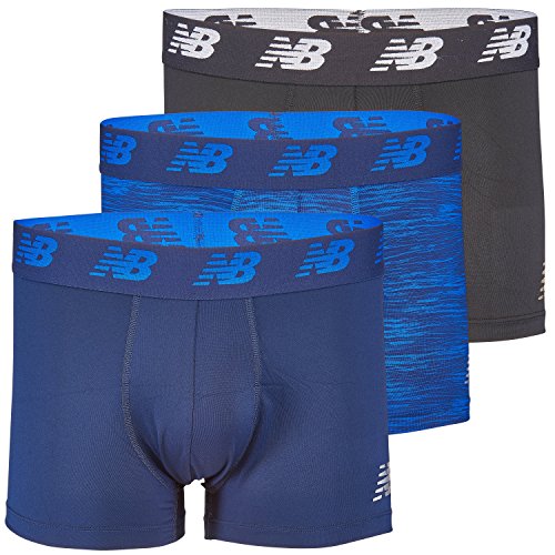 New Balance Men's 3" Performance No Fly Short Boxer Brief Trunks Underpants with Built in Pouch Support (3 Pack), Black/Team Royal/Concrete, Medium