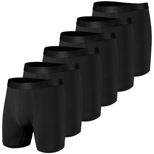 Nuofengkudu Mens Sports Boxer Shorts Open Fly Support Bulge Pouch 6 Pack Anti Chafing Underwear Running Moisture Wicking Waistband Elastic Lightweight Stretch Underpants Gifts Multi Plain Black XL