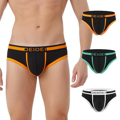 OEIOEI Mens Briefs Underwear Cotton Black Pants Stretch Support Pouch Slips Underpants 3 Pack (L, 3 Sporty Black)