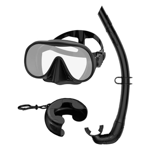 Snorkeling Gear for Adults | Panoramic View Anti-Leak Goggles - With And Adjustable Strap Box Foldable Mens Snorkeling Set - for Women Men Family Lover Athlete Swimming Training Beach Trip