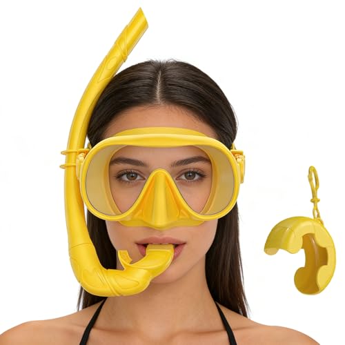Adult Snorkeling Set - Panoramic View Anti-Leak Goggles | With And Adjustable Strap Box Foldable Mens Snorkeling Set - for Men Women Lover Athlete Family Swimming Training Underwater Beach Trip