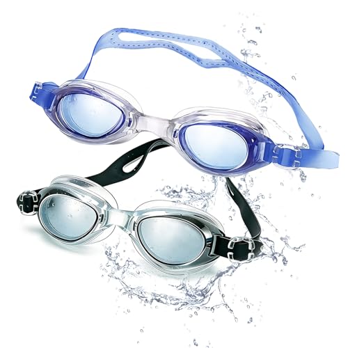2 PCS Swimming Goggles,Comfort Anti Fog Swimming Goggles Adult Women Men,Adjustable Swim Goggle Clear Lens Safety Professional Glasses for Ladies Mens Couple Kids Fit Design No Leaking (Black Blue)
