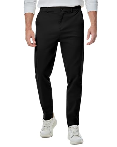 Elegancity Mens Chino Trousers Slim Fit Tapered Leg Dress Pants Cotton Twill Chinos Smart Casual Stretch Pants with Pockets Black, S