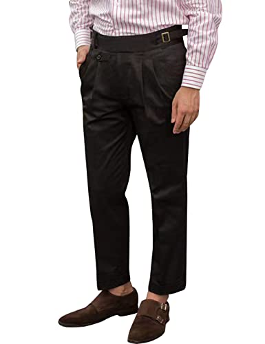 Snoly Men's Spring Fall Retro Cotton Tapered Leg Flat Front Chino Pant Straight Western Gurkha Pants, Black, Medium
