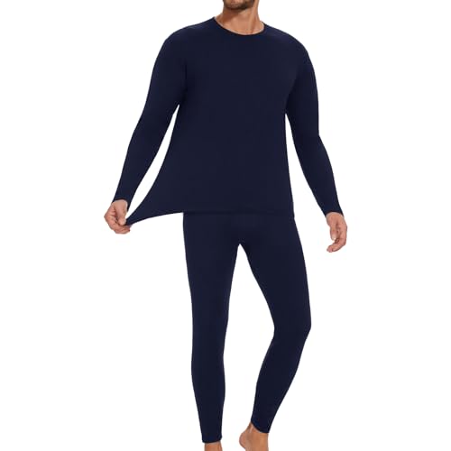 HIPOWER Thermal Underwear Mens Set Top Bottom Long Johns Warm Base layer Fleece Lined Set Vests Leegings Trousers for Cold Winter Wear and Skiing Running Workout Navy Blue