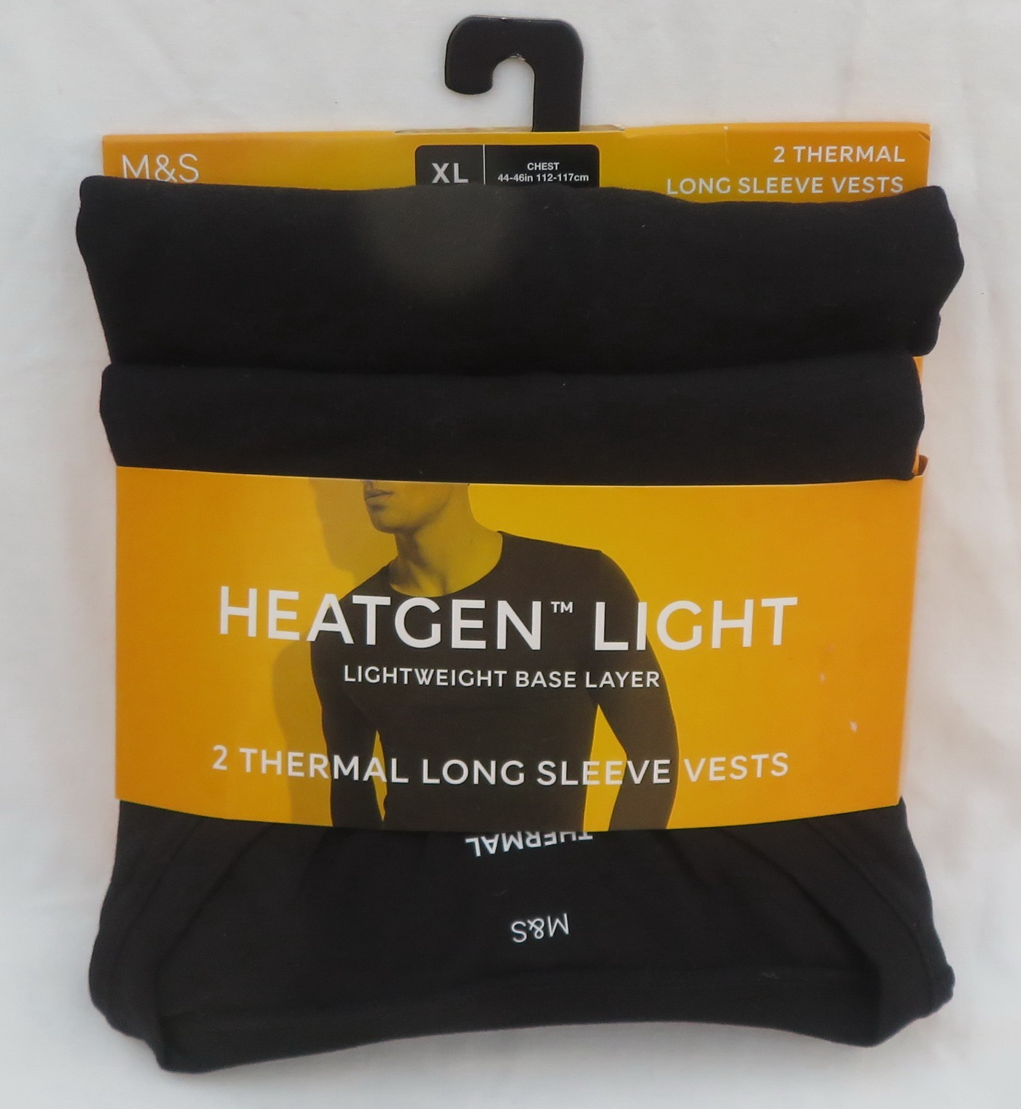 MEN'S MARKS & SPENCER BLACK THERMAL LONG SLEEVE BASE LAYER VESTS 2 PACK SIZE XL