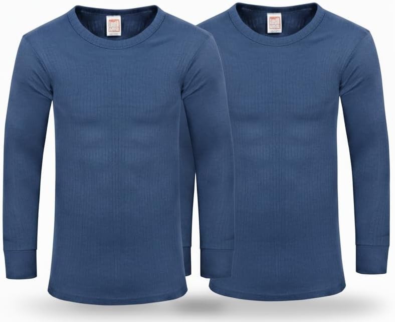 Mens Thermal 2 Pack Underwear Vests Long Sleeve Tops, Thermal T-Shirt Warm Unde