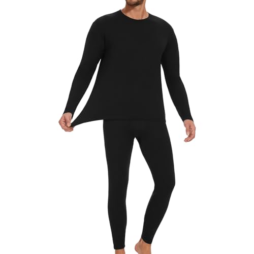 TT ThreadTrade Men's Thermal Underwear Set, Top Bottom Long Johns Warm Base layer Thermal Set Vests Trousers for Cold Winter Wear and Skiing Running Workout (Black Full-Sleeve Set, M)