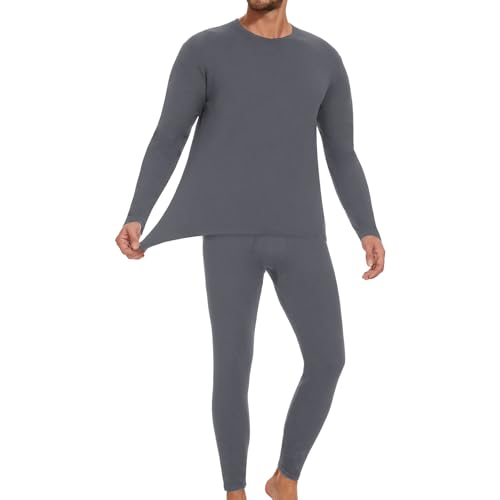 HIPOWER Thermal Underwear Mens Set Top Bottom Long Johns Warm Base layer Fleece Lined Set Vests Leegings Trousers for Cold Winter Wear and Skiing Running Workout Deep Grey