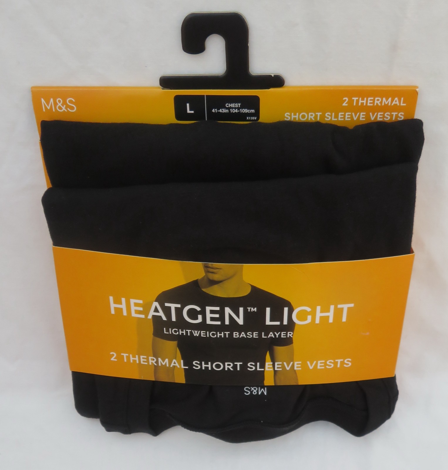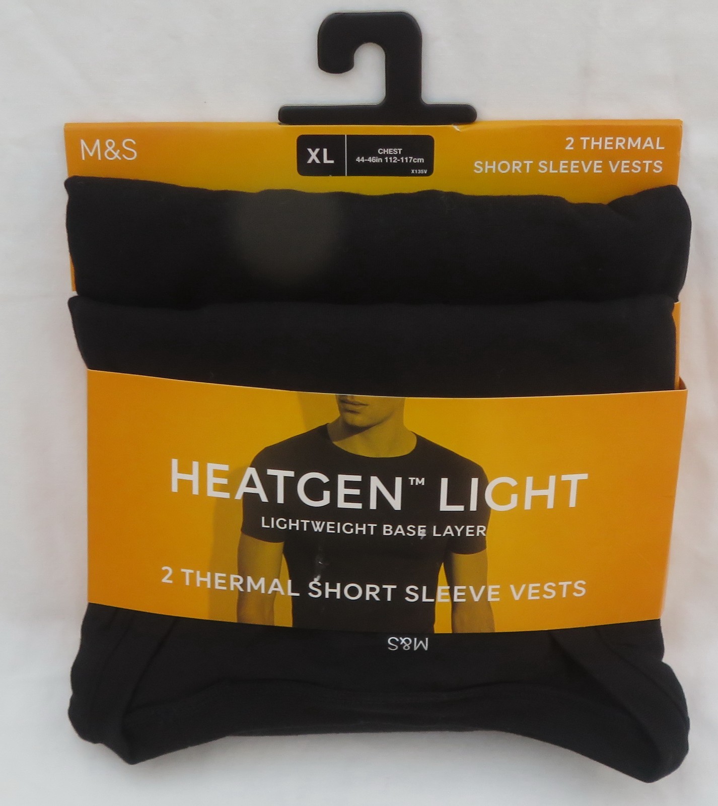 MEN'S MARKS & SPENCER BLACK THERMAL SHORT SLEEVE BASE LAYER VESTS 2 PACK SIZE XL