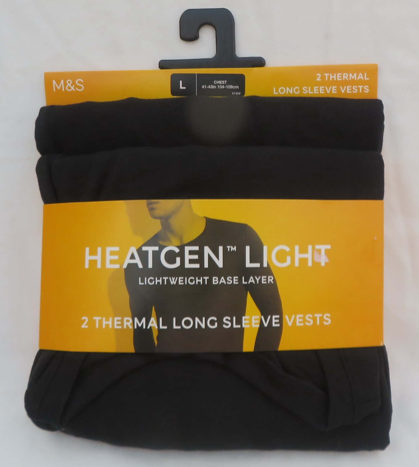 MEN'S MARKS & SPENCER BLACK THERMAL LONG SLEEVE BASE LAYER VESTS 2 PACK SIZE L