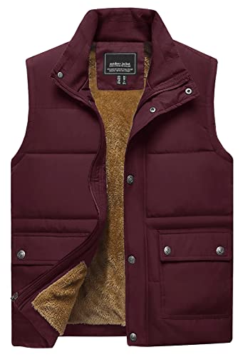 MAGCOMSEN Men's Outerwear Vests Winter Thermal Sleeveless Jackets Work Hiking Camping Outerwear Coats Winter Fleece Lined Thermal Gilets with Zip Pockets, Wine Red