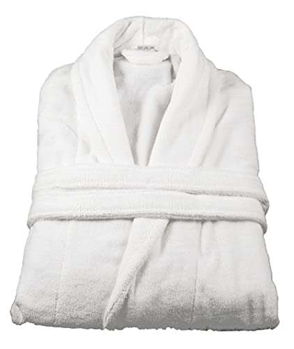 House of Emily Women's Men's 100% Turkish Cotton 400gsm Terry Towelling Shawl Collar Bathrobe Dressing Gown (Large - Chest Size 49" - 52" | Length 50", White)