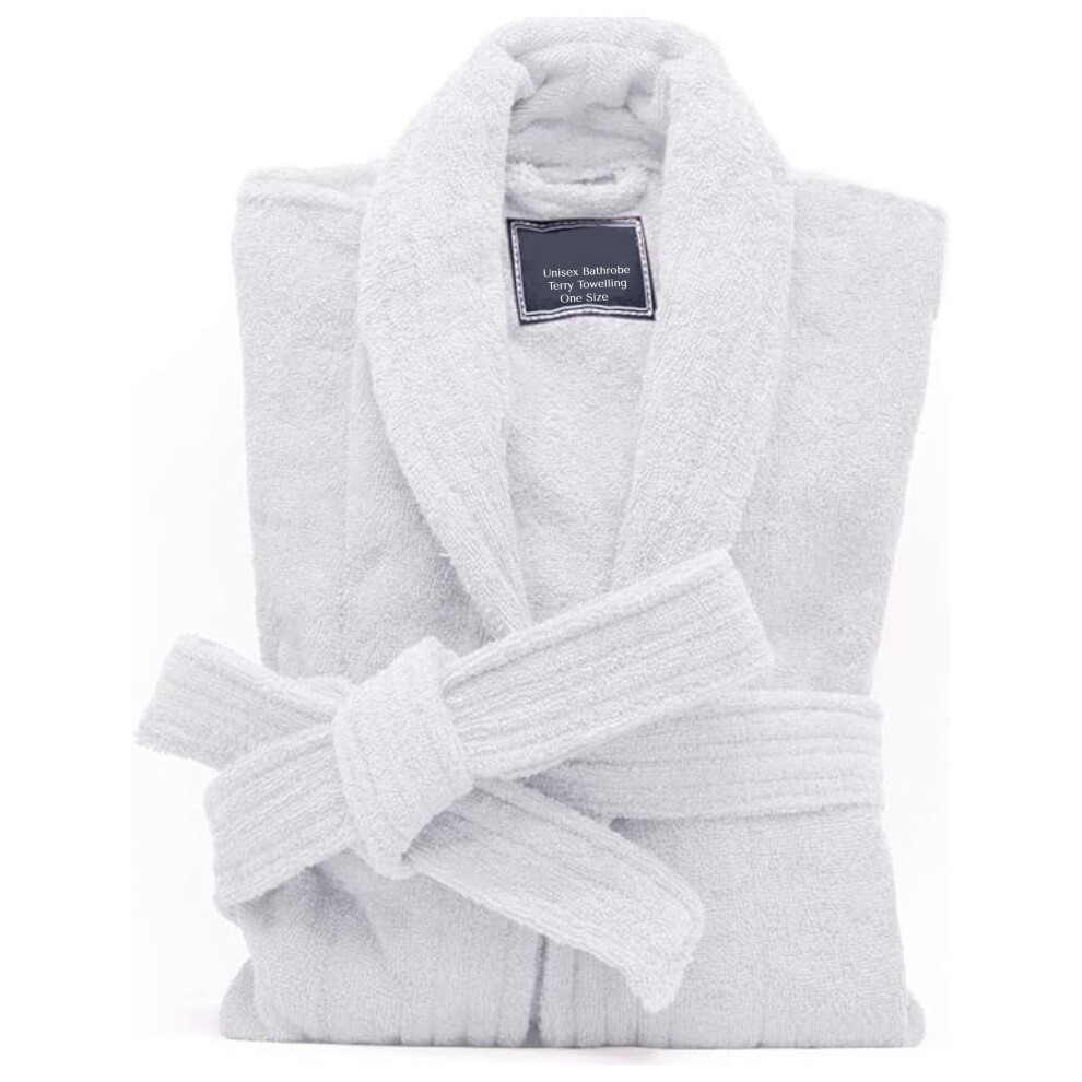 House of Emily Women's Men's 100% Turkish Cotton 400gsm Terry Towelling Shawl Collar Bathrobe Dressing Gown (3XL - Chest Size 67" - 70" | Length 53", White)