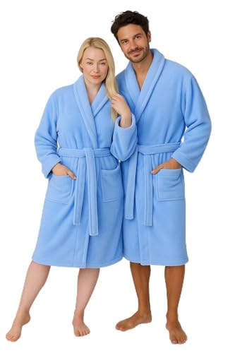 Dressing Gown for Women & Men | Towelling Bathrobe for Adults with Belt, Pockets & Shawl Collar | Women's Dry Robes & Men’s Nightwear | 100% Luxury Cotton, Warm, Soft & Cozy Loungewear (Blue-S/M)