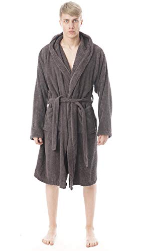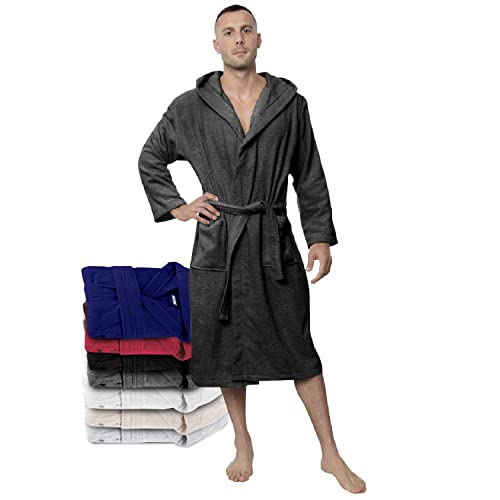 Toro Rocco Bath Robe Men's Hooded Towelling Dressing Gown 100% Cotton Terry Towel Gowns Robes Bathrobe For Men, Charcoal M/L
