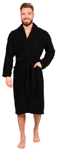 A ATH COLLECTION Men's & Ladies Bathrobe Shawl 100% Egyptian Cotton Terry Towelling Hooded Luxury Robe Collar Dressing Gown Unisex (as8, alpha, xx_l, 3x_l, regular, regular, BLACK, XXL/XXXL)
