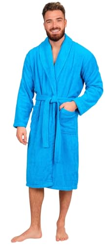 Adore Home Mens 100% Cotton Bathrobe Terry Towelling Shawl Collar Bath Robe Dressing Gown, Aqua, 3XL