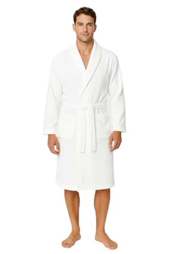 Adore Home Mens 100% Cotton Bathrobe Terry Towelling Shawl Collar Bath Robe Dressing Gown, White, L