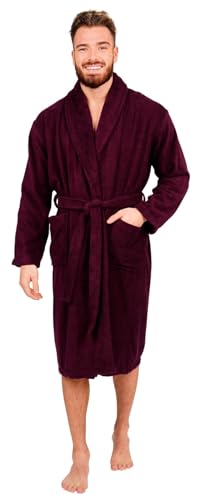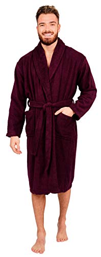 Adore Home Mens 100% Cotton Bathrobe Terry Towelling Shawl Collar Bath Robe Dressing Gown, Aubergine, L